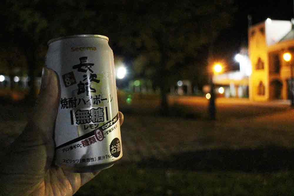 お気に入りの外飲みスポットは女満別の駅前に広がるベンチ。