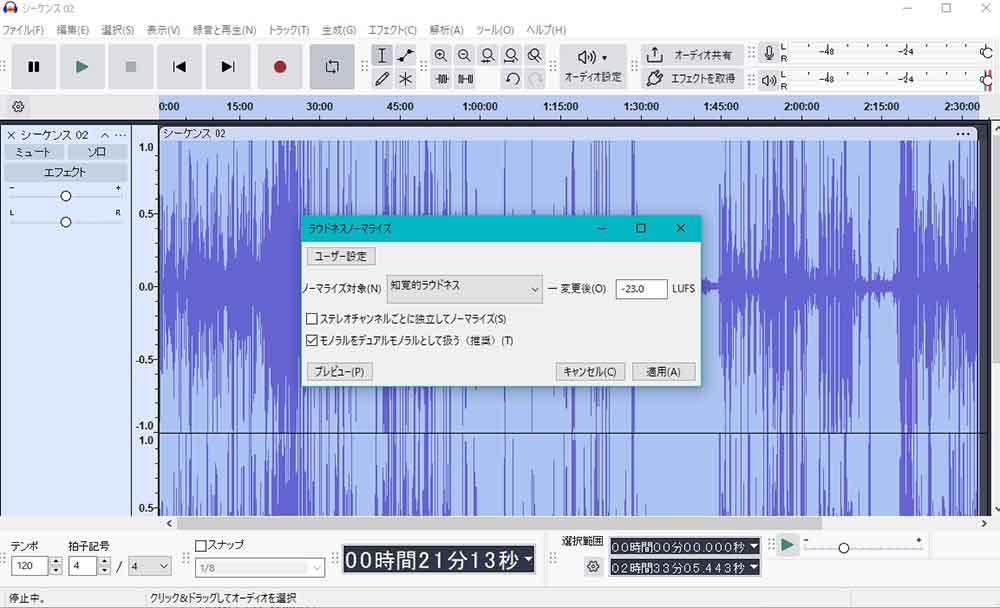 そんな中、古くから音声編集ソフトとして鎮座している無料のAudacityに搭載されている「ラウドネスノーマライズ」は、意外にも実用的な解決策として機能した。