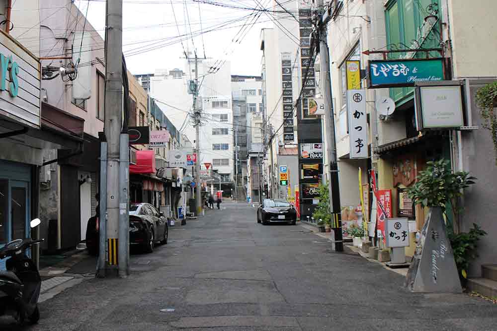 日本一長いアーケード街の裏手にあるこの路地は、戦後、シューズ店が次々と出店し、靴の宝庫として賑わった歴史を持つ。