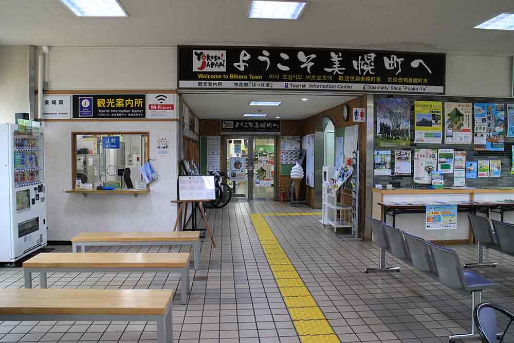 美幌駅の構内。駅員はいないけど観光案内所や物産館があって嫉妬する
