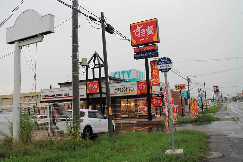 車社会だからあまり関係ないけれど、駅から3Kmくらい離れた郊外(?)にもショッピングセンターなどが密集していて、北見とかを思わせるような都会的な風景。美幌のすき家は2024年9月開店らしい。未だに発展を続けているエリアなのだろう。