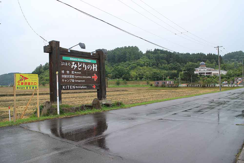 旭川空港から最寄り駅の千代ヶ丘まで歩く時の景色と似たようなものがあると思いながら歩き続けると、みどりの村という看板が見えてくる。