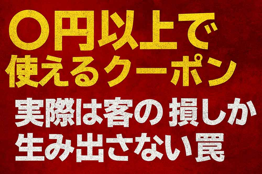 最低購入金額付きクーポンは消費者に“得した気分”を与えることで、実際には損をさせる仕掛けである。企業は消費者の心理を徹底的に分析し、財布を開かせるための条件を巧妙に設計している。割引という名のもとに不要な商品を買わせ、余計な出費をさせるこの手法は消費者を舐め切ったマーケティングの極みだ。