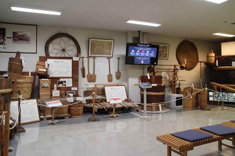 受付とかもなく、施設内を自由に歩けるようになっていて、説明のビデオがあったり、展示物で日本酒造りや男山のことを学ぶことができる。
