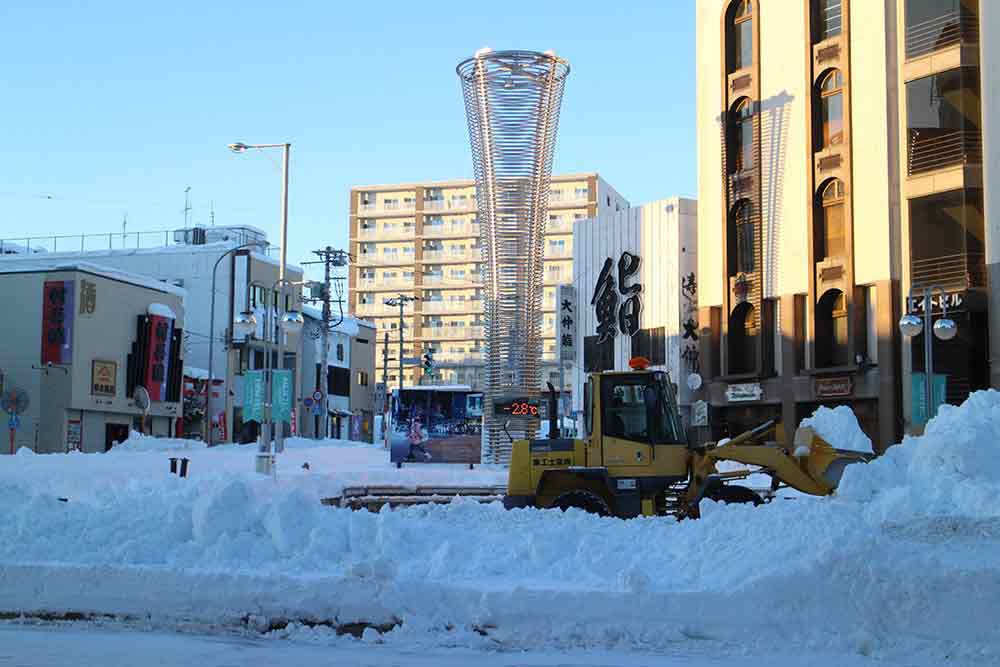 北見駅前の様子。雪山で遊んだ子供時代の記憶が懐かしい